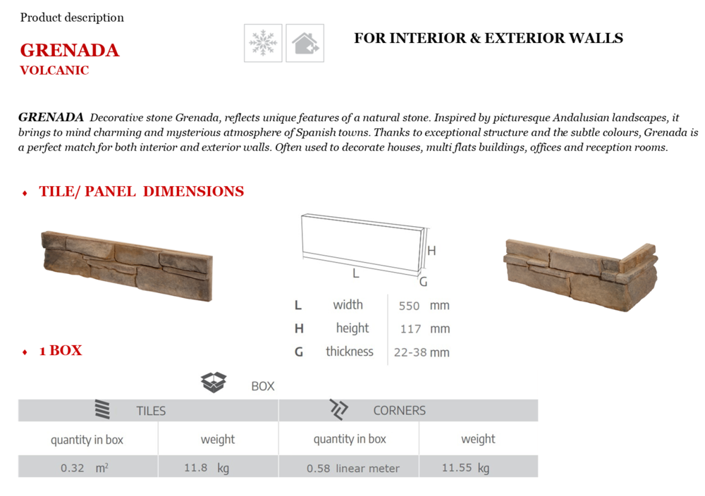 | PRODUCT PROPERTIES | Stone Panel / Tile | Corner | Sample |